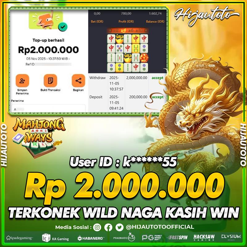 Selamat Kepada Member HIJAUTOTO K******55 Telah Jackpot Di SLOT MAHJONG WAYS