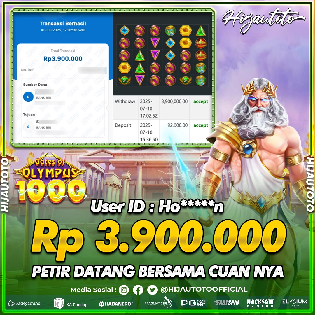 Selamat datang di HIJAUTOTO, tempatnya seru-seruan dan cuan besar! Mulai main cukup dengan modal Rp5.000 aja, taruhan super murah dari Rp100 perak! Mau main slot yang penuh warna? Atau togel dari 20 pasaran paling hits? Atau mungkin tembak ikan yang bikin deg-degan? Tenang, ada juga taruhan bola, sabung ayam, dan live casino yang bikin suasana makin hidup! Daftar sekarang dan dapetin bonus new member 100% langsung, biar modalmu makin tebal. Deposit gampang banget, bisa pakai QRIS, dan kalau butuh bantuan, customer service kita siap 24 jam nonstop. Jadi, tunggu apa lagi? Yuk, gabung dan bawa pulang kemenangannya cuma di HIJAUTOTO!