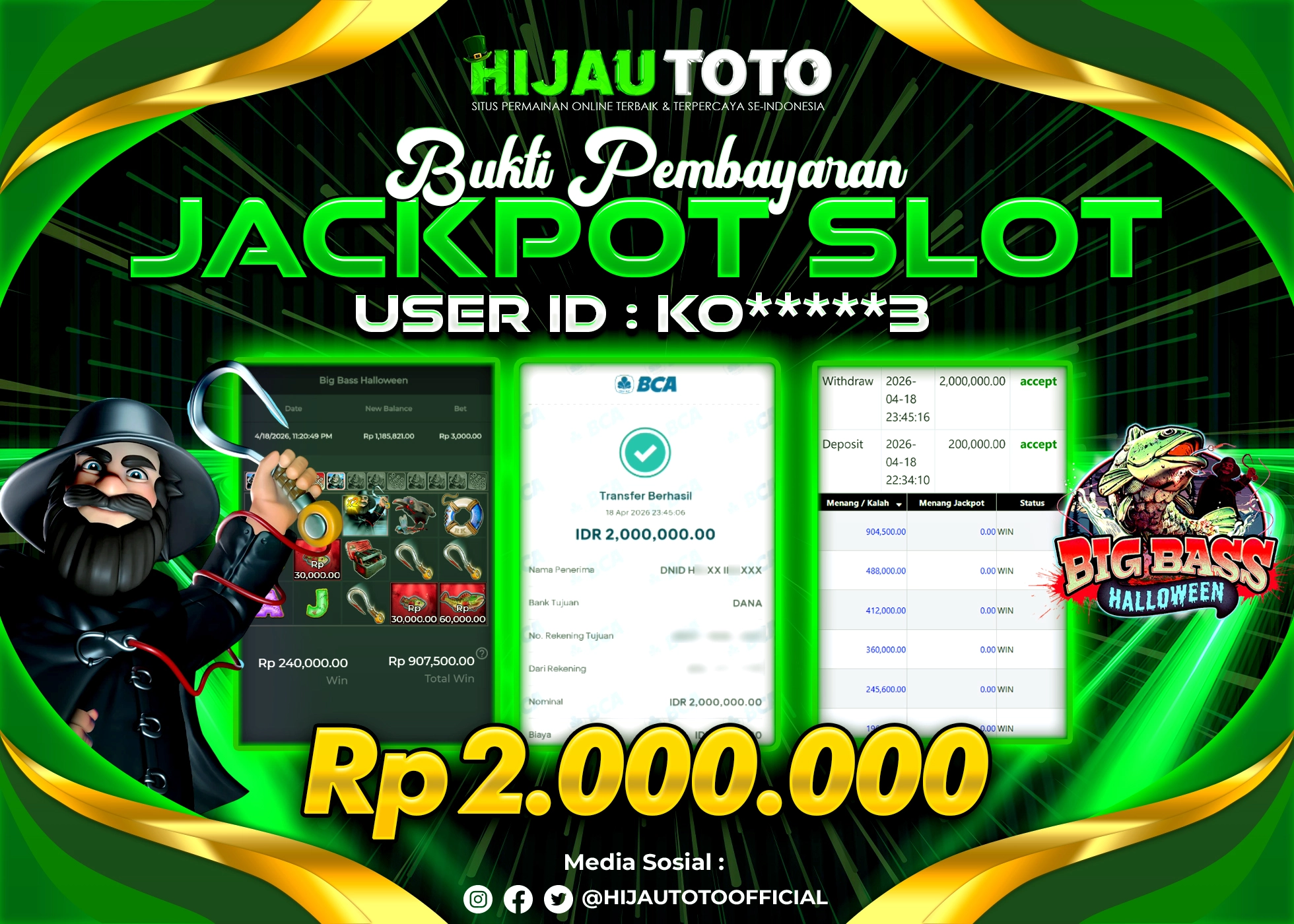 Selamat datang di HIJAUTOTO, tempatnya seru-seruan dan cuan besar! Mulai main cukup dengan modal Rp5.000 aja, taruhan super murah dari Rp100 perak! Mau main slot yang penuh warna? Atau togel dari 20 pasaran paling hits? Atau mungkin tembak ikan yang bikin deg-degan? Tenang, ada juga taruhan bola, sabung ayam, dan live casino yang bikin suasana makin hidup! Daftar sekarang dan dapetin bonus new member 100% langsung, biar modalmu makin tebal. Deposit gampang banget, bisa pakai QRIS, dan kalau butuh bantuan, customer service kita siap 24 jam nonstop. Jadi, tunggu apa lagi? Yuk, gabung dan bawa pulang kemenangannya cuma di HIJAUTOTO!