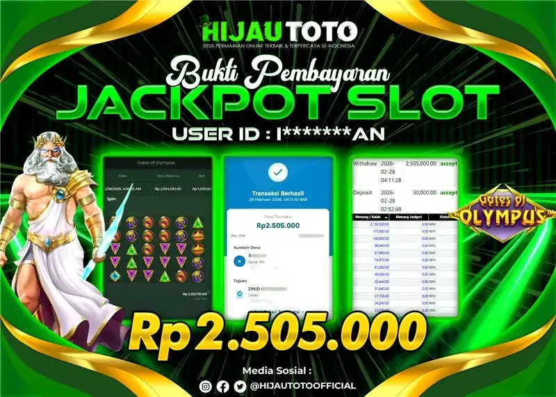 Selamat datang di HIJAUTOTO, tempatnya seru-seruan dan cuan besar! Mulai main cukup dengan modal Rp5.000 aja, taruhan super murah dari Rp100 perak! Mau main slot yang penuh warna? Atau togel dari 20 pasaran paling hits? Atau mungkin tembak ikan yang bikin deg-degan? Tenang, ada juga taruhan bola, sabung ayam, dan live casino yang bikin suasana makin hidup! Daftar sekarang dan dapetin bonus new member 100% langsung, biar modalmu makin tebal. Deposit gampang banget, bisa pakai QRIS, dan kalau butuh bantuan, customer service kita siap 24 jam nonstop. Jadi, tunggu apa lagi? Yuk, gabung dan bawa pulang kemenangannya cuma di HIJAUTOTO!