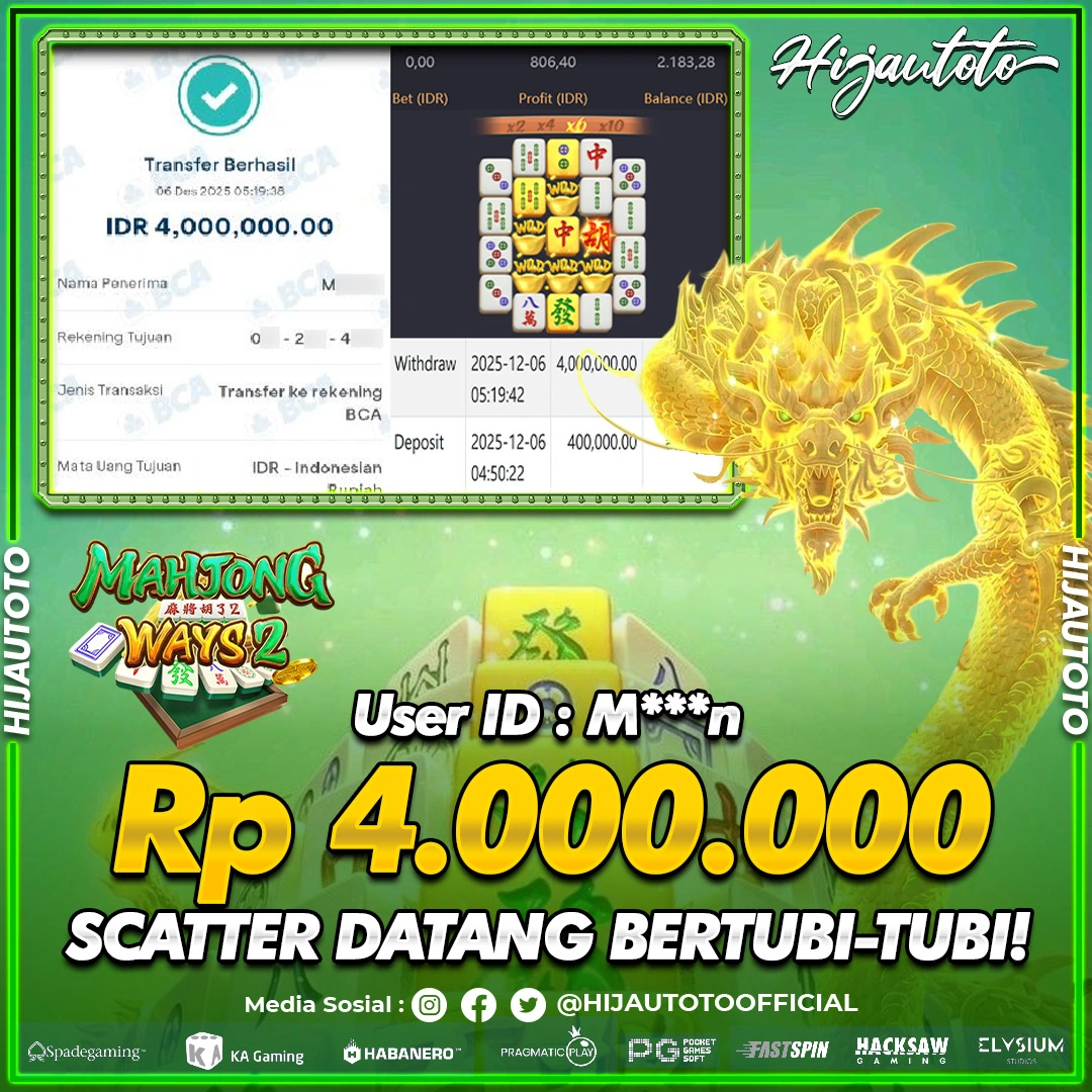 Selamat datang di HIJAUTOTO, tempatnya seru-seruan dan cuan besar! Mulai main cukup dengan modal Rp5.000 aja, taruhan super murah dari Rp100 perak! Mau main slot yang penuh warna? Atau togel dari 20 pasaran paling hits? Atau mungkin tembak ikan yang bikin deg-degan? Tenang, ada juga taruhan bola, sabung ayam, dan live casino yang bikin suasana makin hidup! Daftar sekarang dan dapetin bonus new member 100% langsung, biar modalmu makin tebal. Deposit gampang banget, bisa pakai QRIS, dan kalau butuh bantuan, customer service kita siap 24 jam nonstop. Jadi, tunggu apa lagi? Yuk, gabung dan bawa pulang kemenangannya cuma di HIJAUTOTO!