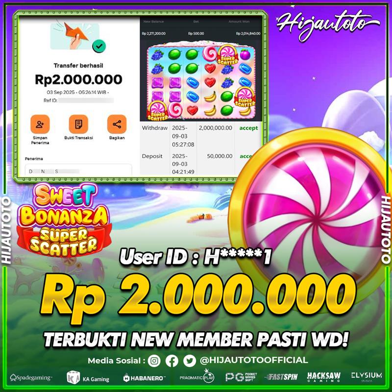 Selamat Kepada Member HIJAUTOTO H*****1 Telah Jackpot Di SLOT SWEET BONANZA SUPER SCATTER