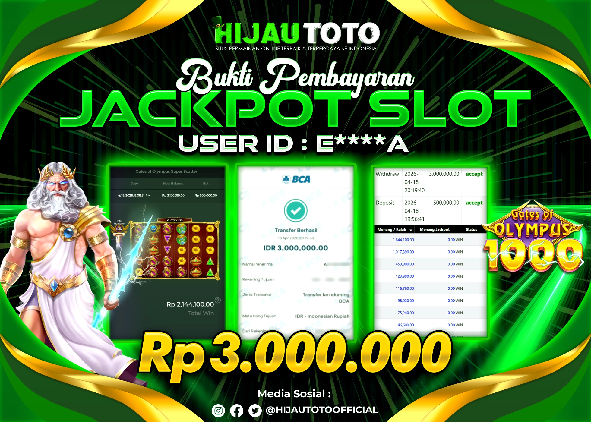 β¨ JACKPOT DI SLOT GATES OF OLYMPUS 1000 β¨