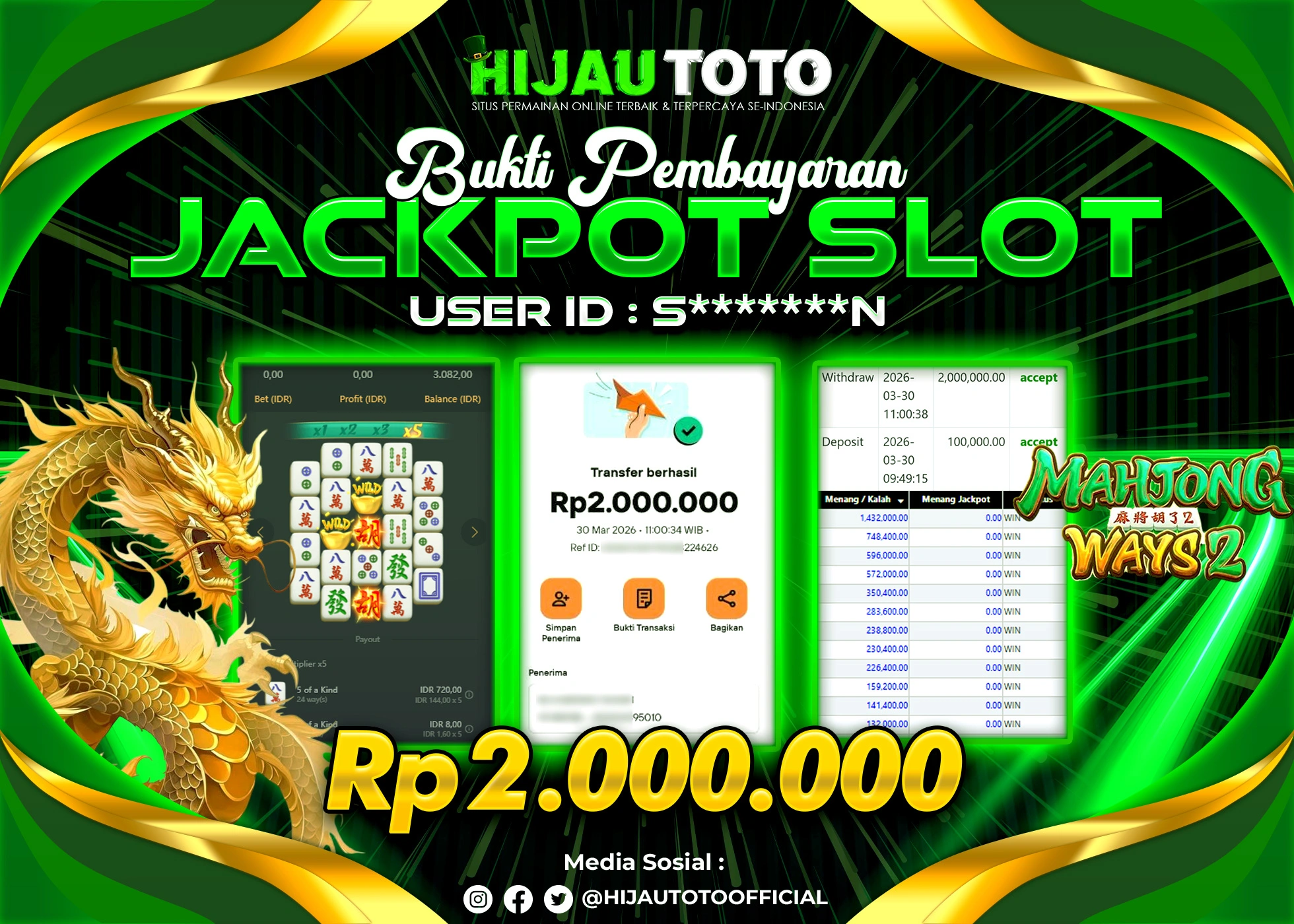 Selamat datang di HIJAUTOTO, tempatnya seru-seruan dan cuan besar! Mulai main cukup dengan modal Rp5.000 aja, taruhan super murah dari Rp100 perak! Mau main slot yang penuh warna? Atau togel dari 20 pasaran paling hits? Atau mungkin tembak ikan yang bikin deg-degan? Tenang, ada juga taruhan bola, sabung ayam, dan live casino yang bikin suasana makin hidup! Daftar sekarang dan dapetin bonus new member 100% langsung, biar modalmu makin tebal. Deposit gampang banget, bisa pakai QRIS, dan kalau butuh bantuan, customer service kita siap 24 jam nonstop. Jadi, tunggu apa lagi? Yuk, gabung dan bawa pulang kemenangannya cuma di HIJAUTOTO!