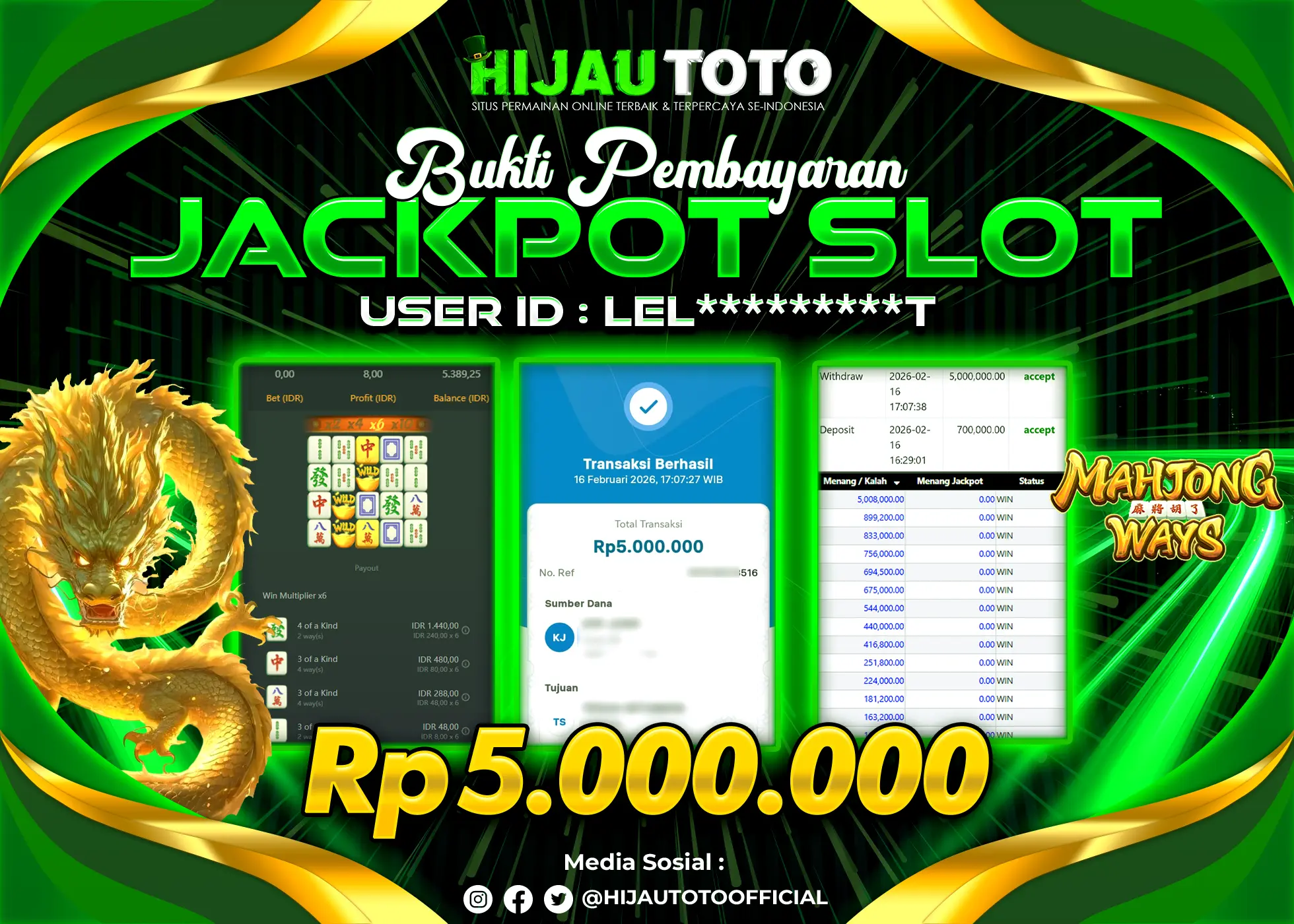 Selamat datang di HIJAUTOTO, tempatnya seru-seruan dan cuan besar! Mulai main cukup dengan modal Rp5.000 aja, taruhan super murah dari Rp100 perak! Mau main slot yang penuh warna? Atau togel dari 20 pasaran paling hits? Atau mungkin tembak ikan yang bikin deg-degan? Tenang, ada juga taruhan bola, sabung ayam, dan live casino yang bikin suasana makin hidup! Daftar sekarang dan dapetin bonus new member 100% langsung, biar modalmu makin tebal. Deposit gampang banget, bisa pakai QRIS, dan kalau butuh bantuan, customer service kita siap 24 jam nonstop. Jadi, tunggu apa lagi? Yuk, gabung dan bawa pulang kemenangannya cuma di HIJAUTOTO!
