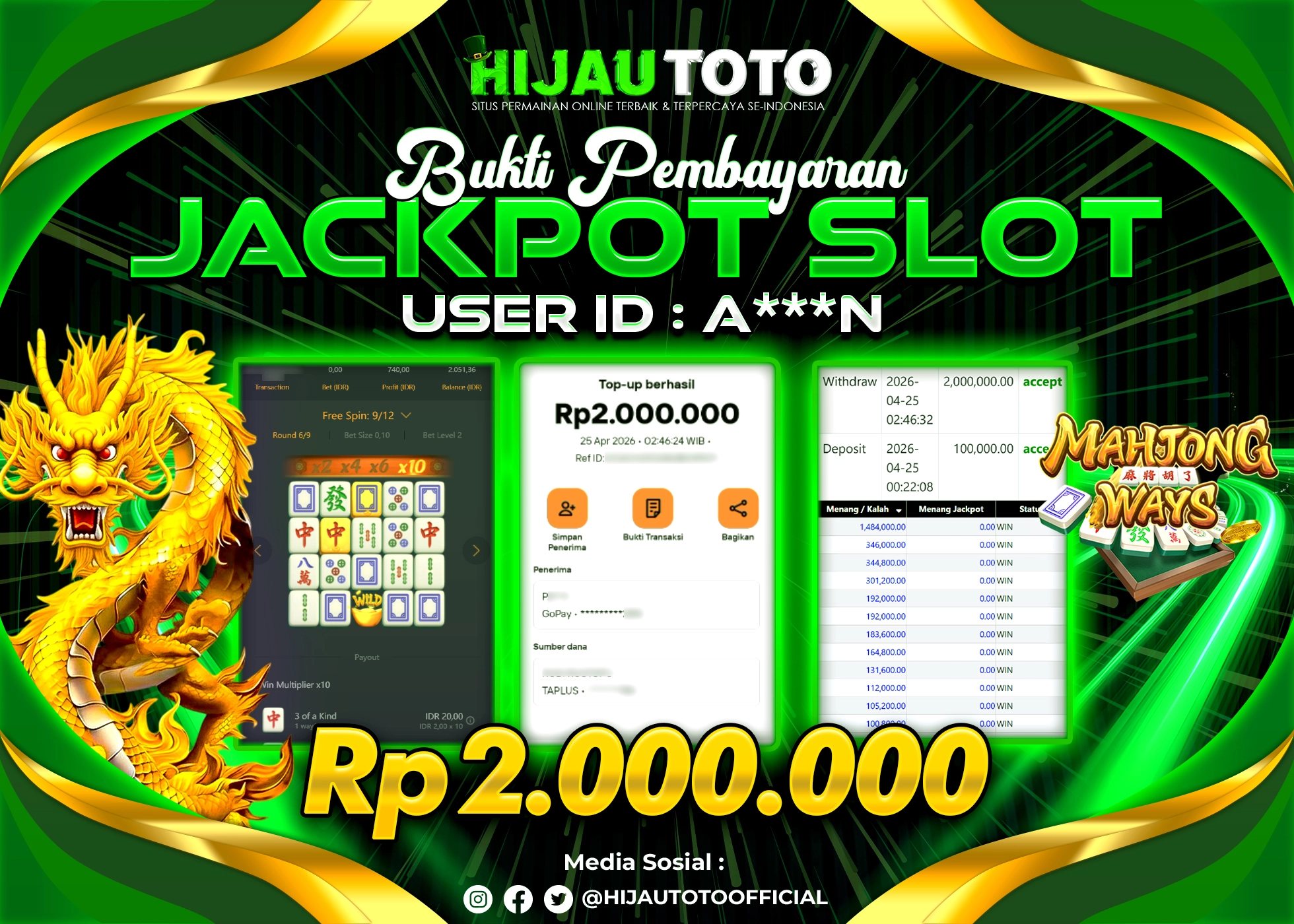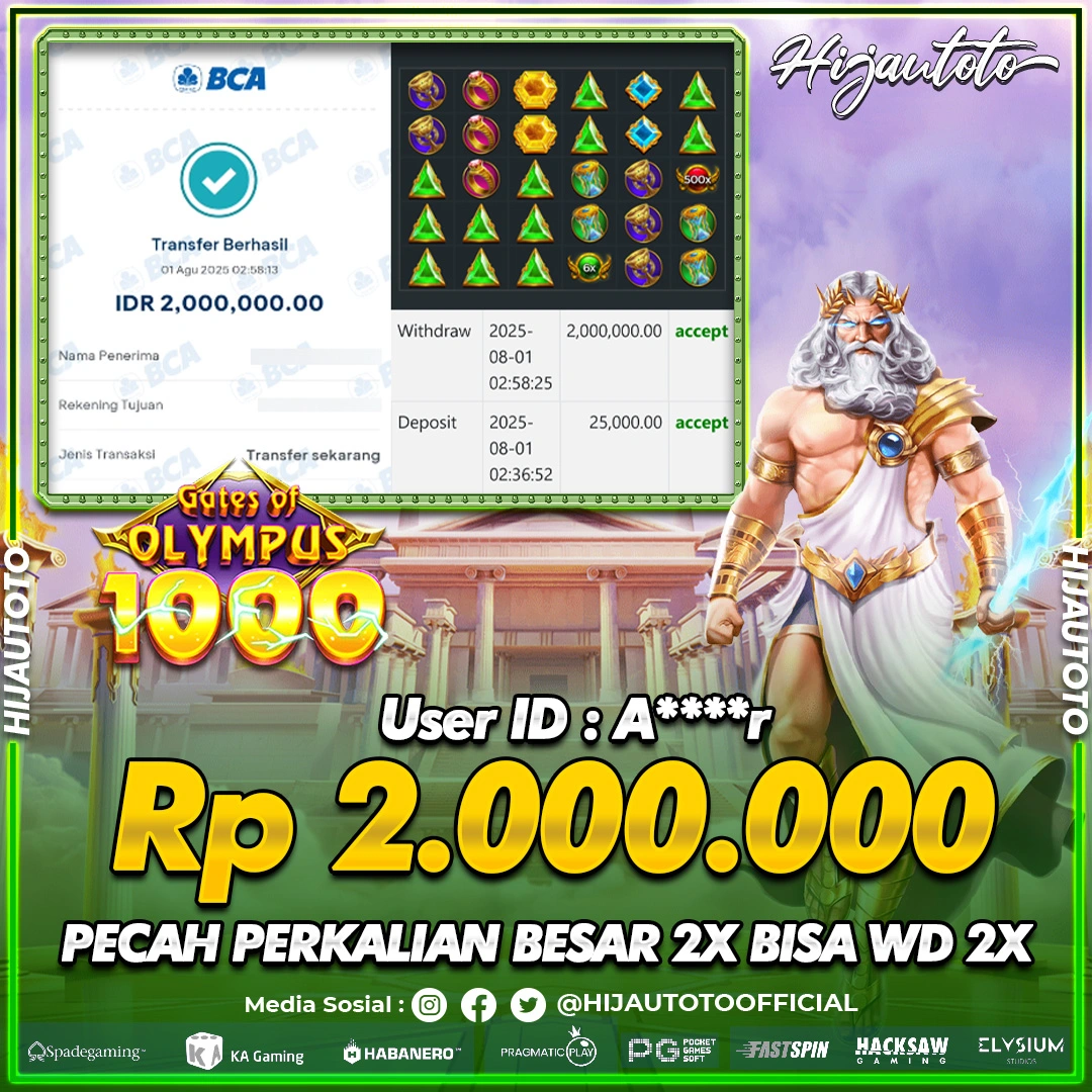 Selamat datang di HIJAUTOTO, tempatnya seru-seruan dan cuan besar! Mulai main cukup dengan modal Rp5.000 aja, taruhan super murah dari Rp100 perak! Mau main slot yang penuh warna? Atau togel dari 20 pasaran paling hits? Atau mungkin tembak ikan yang bikin deg-degan? Tenang, ada juga taruhan bola, sabung ayam, dan live casino yang bikin suasana makin hidup! Daftar sekarang dan dapetin bonus new member 100% langsung, biar modalmu makin tebal. Deposit gampang banget, bisa pakai QRIS, dan kalau butuh bantuan, customer service kita siap 24 jam nonstop. Jadi, tunggu apa lagi? Yuk, gabung dan bawa pulang kemenangannya cuma di HIJAUTOTO!