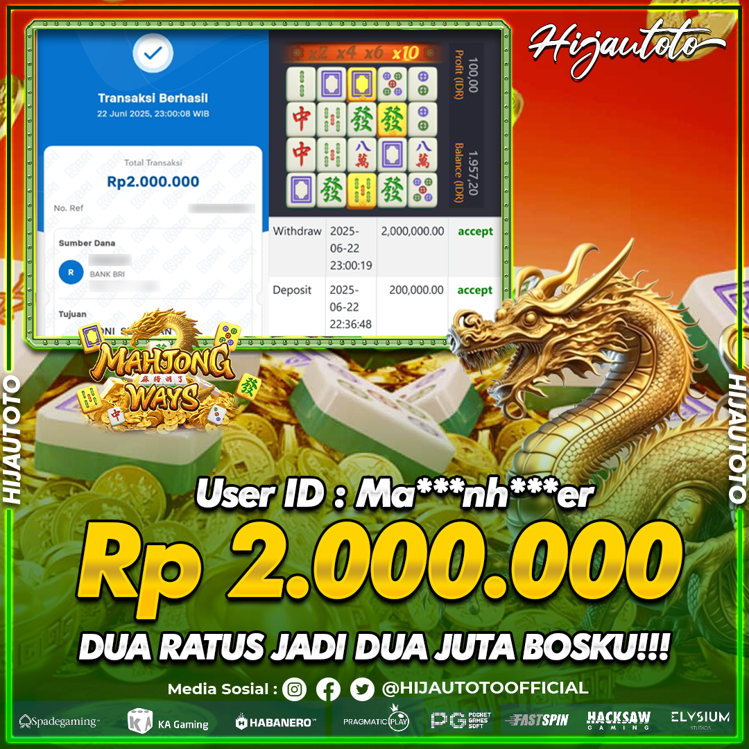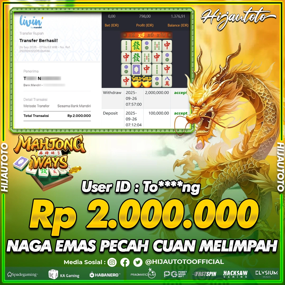Selamat datang di HIJAUTOTO, tempatnya seru-seruan dan cuan besar! Mulai main cukup dengan modal Rp5.000 aja, taruhan super murah dari Rp100 perak! Mau main slot yang penuh warna? Atau togel dari 20 pasaran paling hits? Atau mungkin tembak ikan yang bikin deg-degan? Tenang, ada juga taruhan bola, sabung ayam, dan live casino yang bikin suasana makin hidup! Daftar sekarang dan dapetin bonus new member 100% langsung, biar modalmu makin tebal. Deposit gampang banget, bisa pakai QRIS, dan kalau butuh bantuan, customer service kita siap 24 jam nonstop. Jadi, tunggu apa lagi? Yuk, gabung dan bawa pulang kemenangannya cuma di HIJAUTOTO!