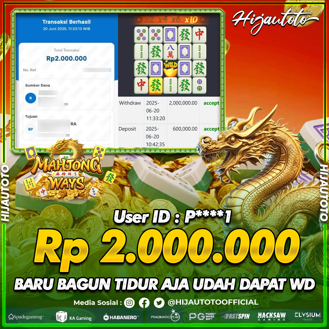 Selamat datang di HIJAUTOTO, tempatnya seru-seruan dan cuan besar! Mulai main cukup dengan modal Rp5.000 aja, taruhan super murah dari Rp100 perak! Mau main slot yang penuh warna? Atau togel dari 20 pasaran paling hits? Atau mungkin tembak ikan yang bikin deg-degan? Tenang, ada juga taruhan bola, sabung ayam, dan live casino yang bikin suasana makin hidup! Daftar sekarang dan dapetin bonus new member 100% langsung, biar modalmu makin tebal. Deposit gampang banget, bisa pakai QRIS, dan kalau butuh bantuan, customer service kita siap 24 jam nonstop. Jadi, tunggu apa lagi? Yuk, gabung dan bawa pulang kemenangannya cuma di HIJAUTOTO!
