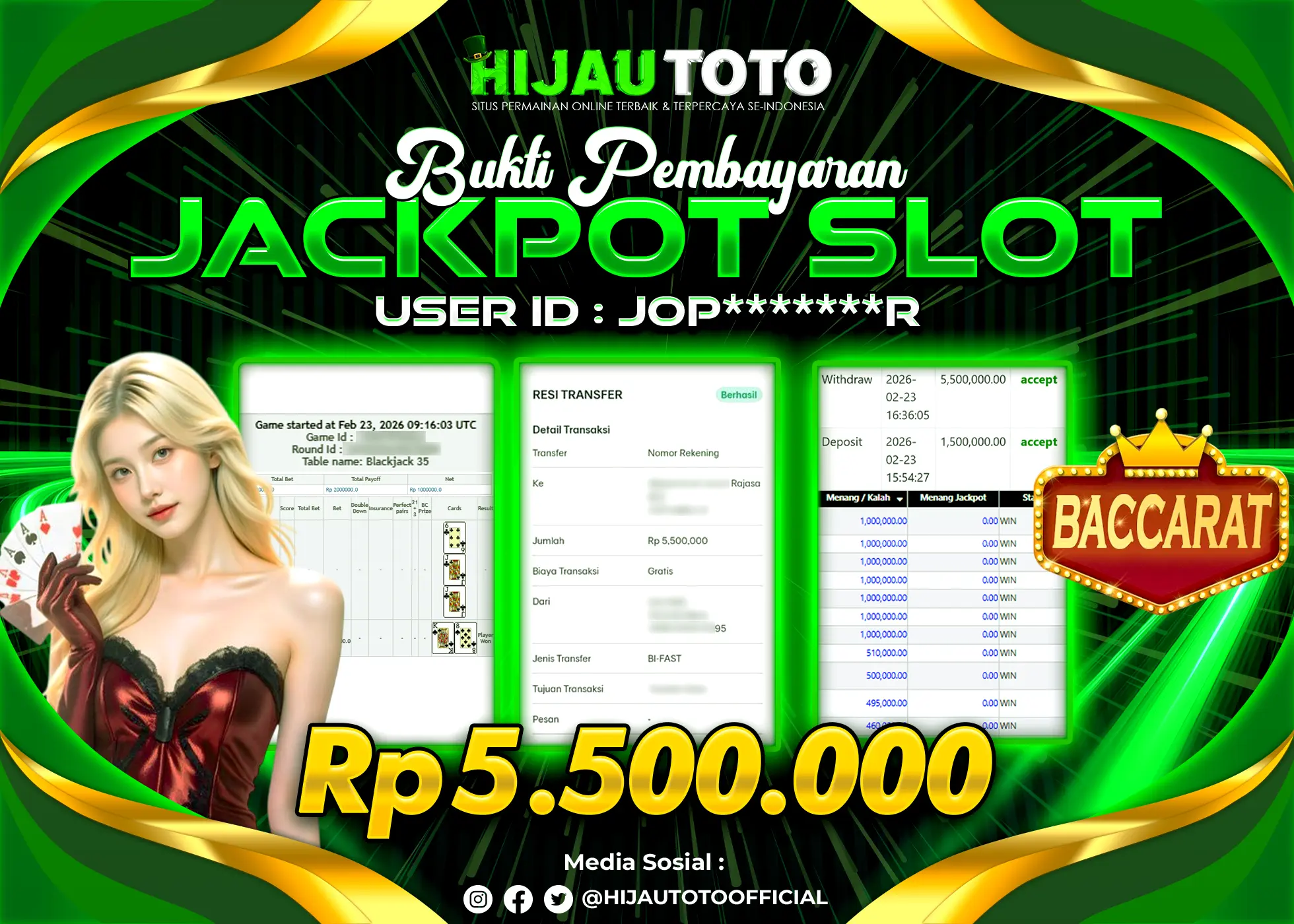 Selamat Kepada Member HIJAUTOTO JOP*******R Telah Jackpot Di LIVE CASINO BACARAT