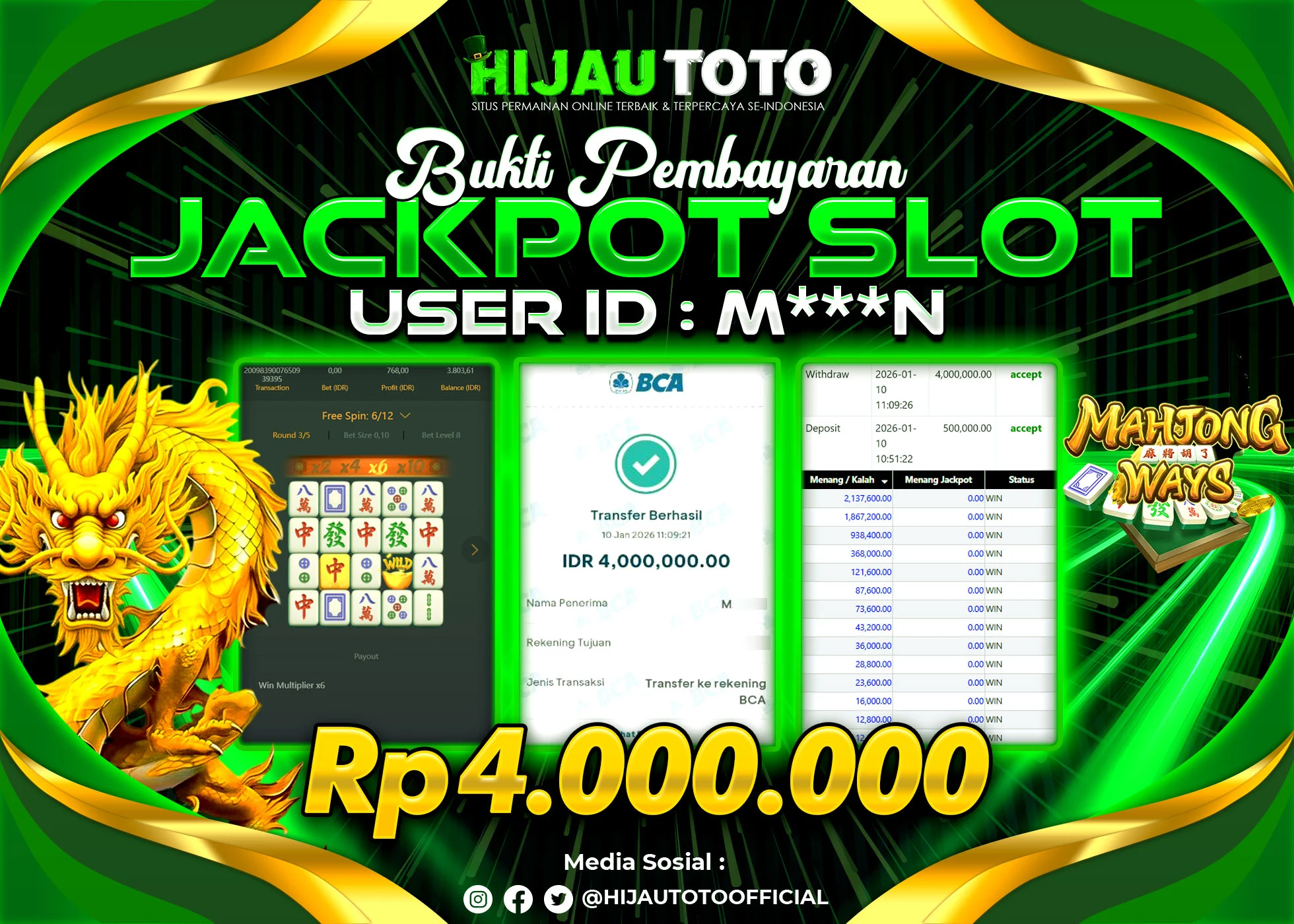 Selamat Kepada Member HIJAUTOTO M**** Telah Jackpot Di SLOT MAHJONG WAYS
