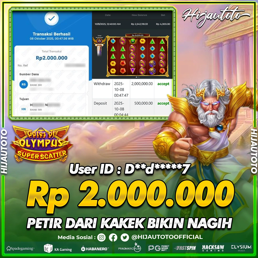 Karena berhasil memenangkan Rp.Rp.2.000.000 dari permainan seru SLOT GATES OF OLYMPUS di HIJAUTOTO! πŸ’°πŸ’Έ