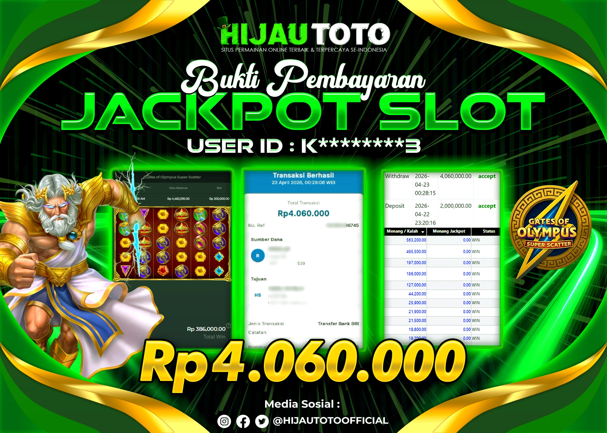 Selamat Kepada Member HIJAUTOTO K********3 Telah Jackpot Di SLOT GATES OF OLYMPUS SUPER SCATTER