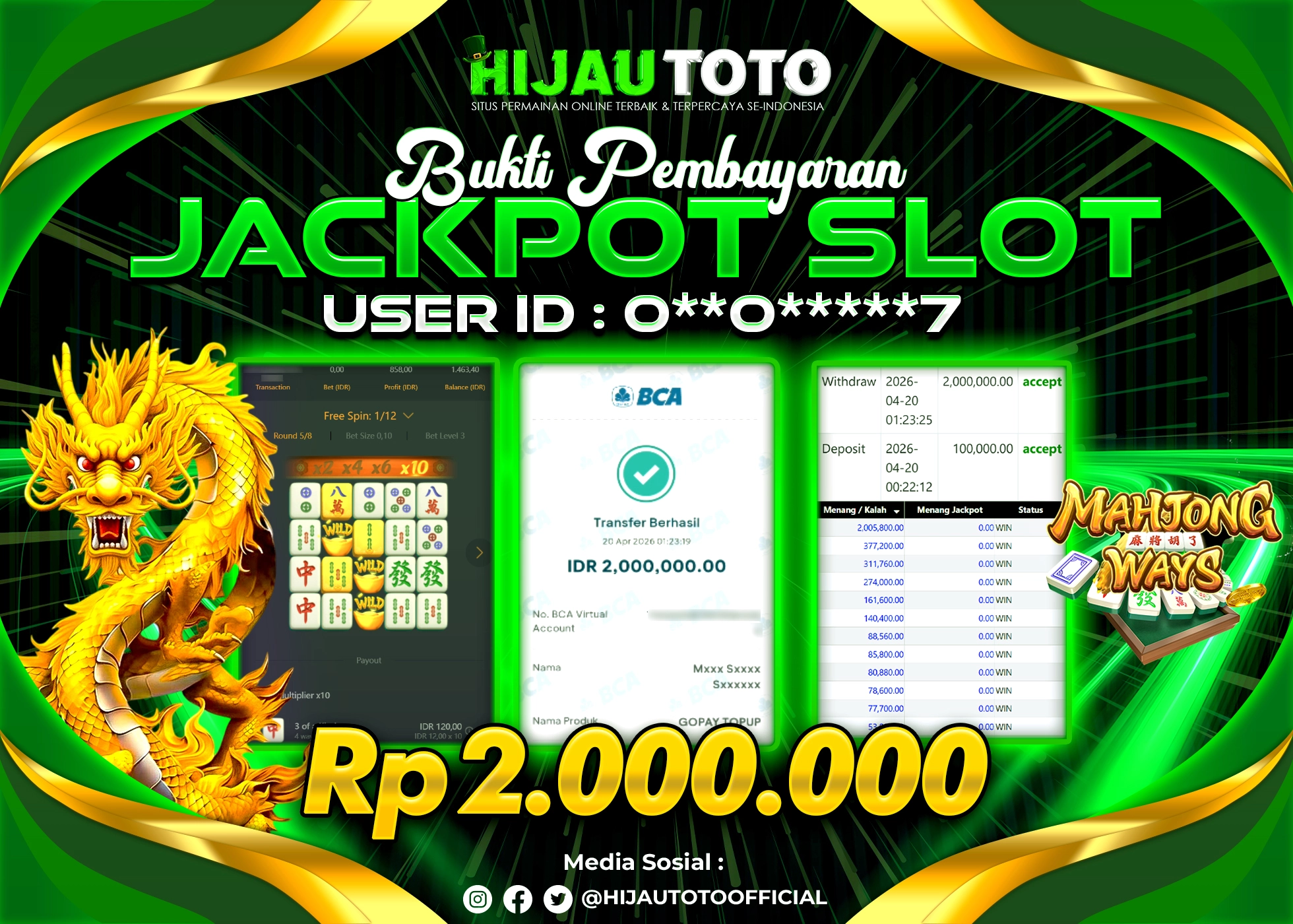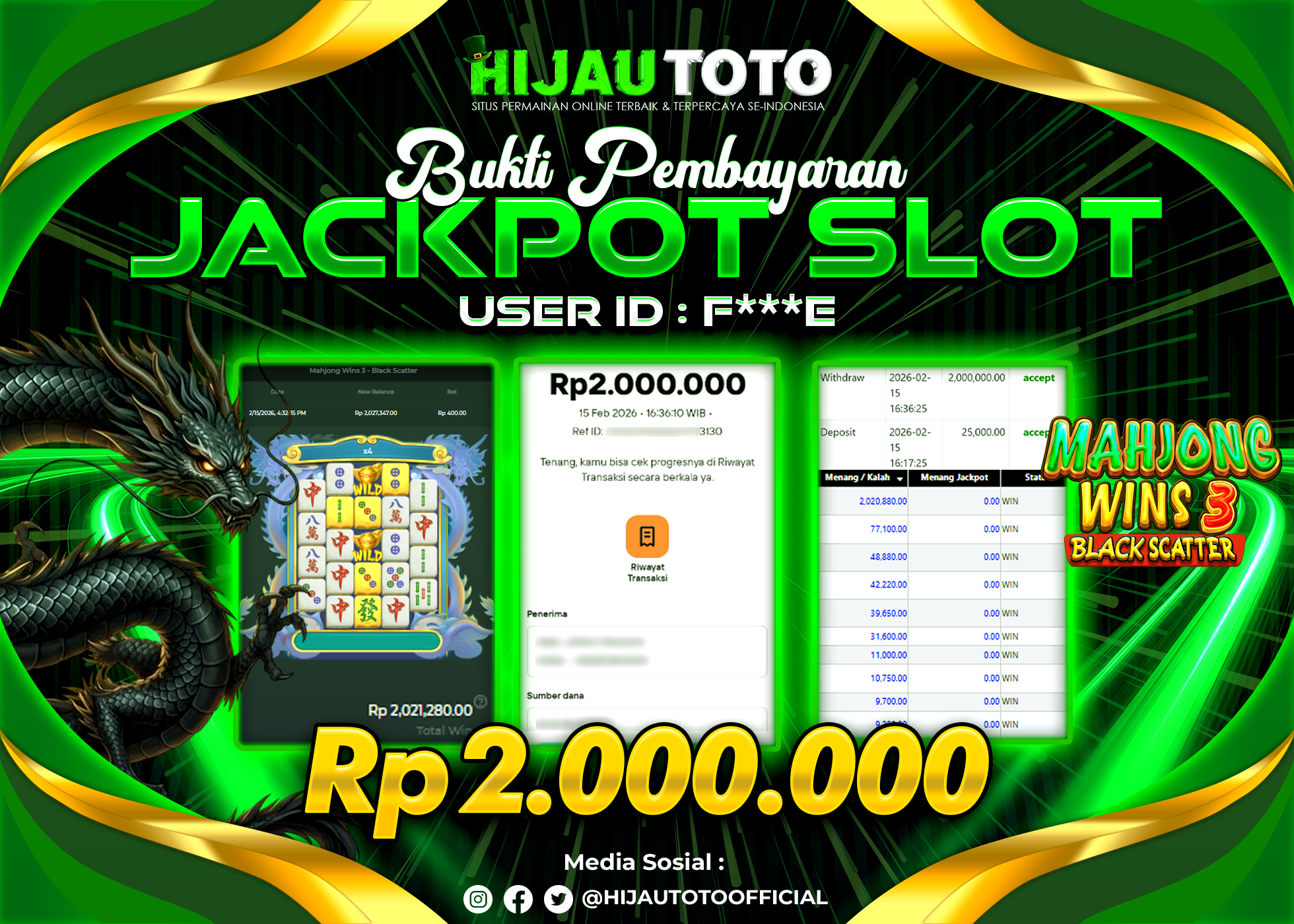 Bergabung dengan HIJAUTOTO sangat mudah dan cepat. Cukup lakukan pendaftaran dengan data lengkap, lakukan deposit minimal Rp5.000 melalui berbagai metode termasuk QRIS, dan mulai bertaruh dengan minimal taruhan Rp100. Dapatkan juga bonus new member 100% untuk modal bermain lebih besar.