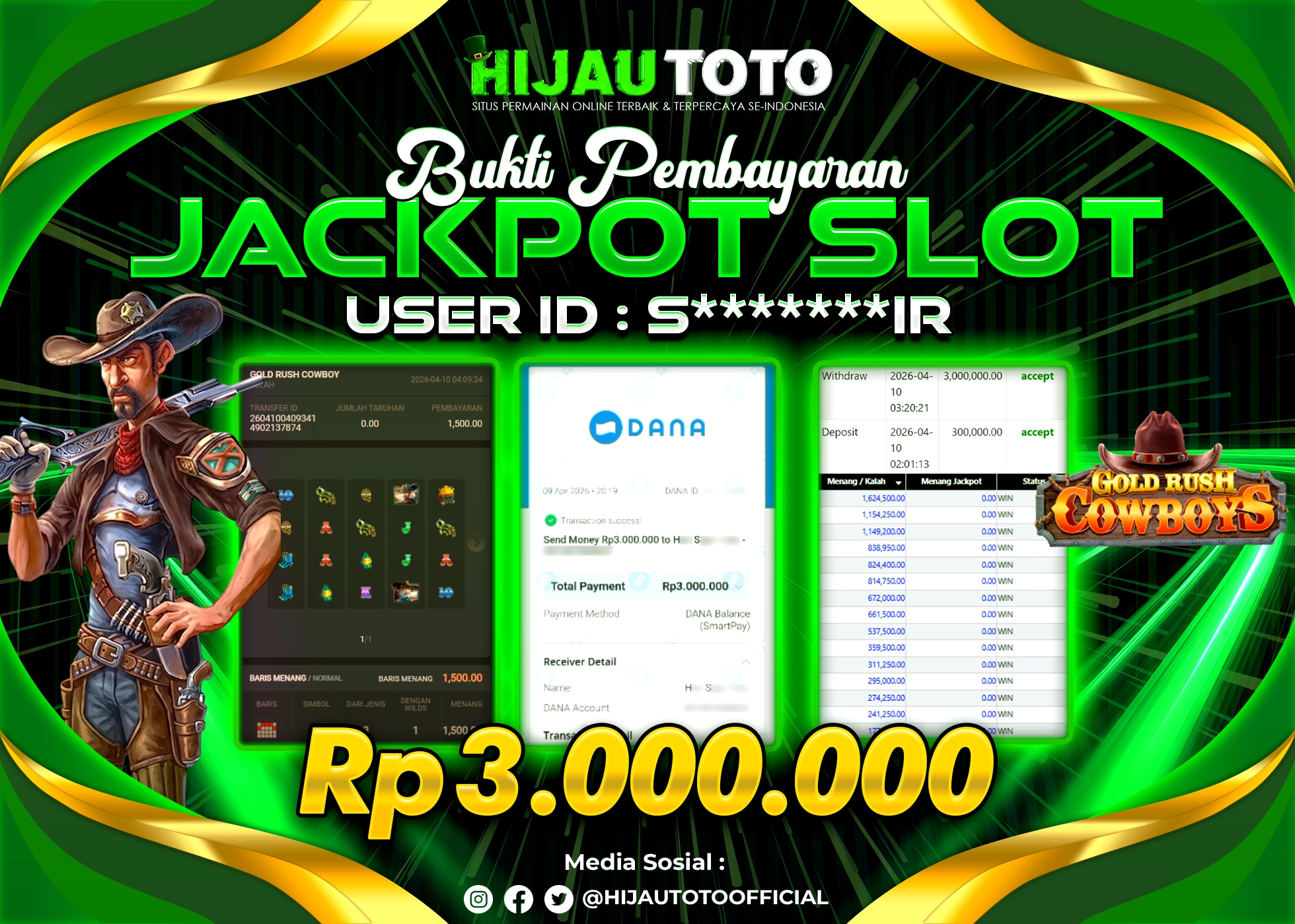 β¨ JACKPOT DI SLOT GOLD RUSH COWBOYS β¨