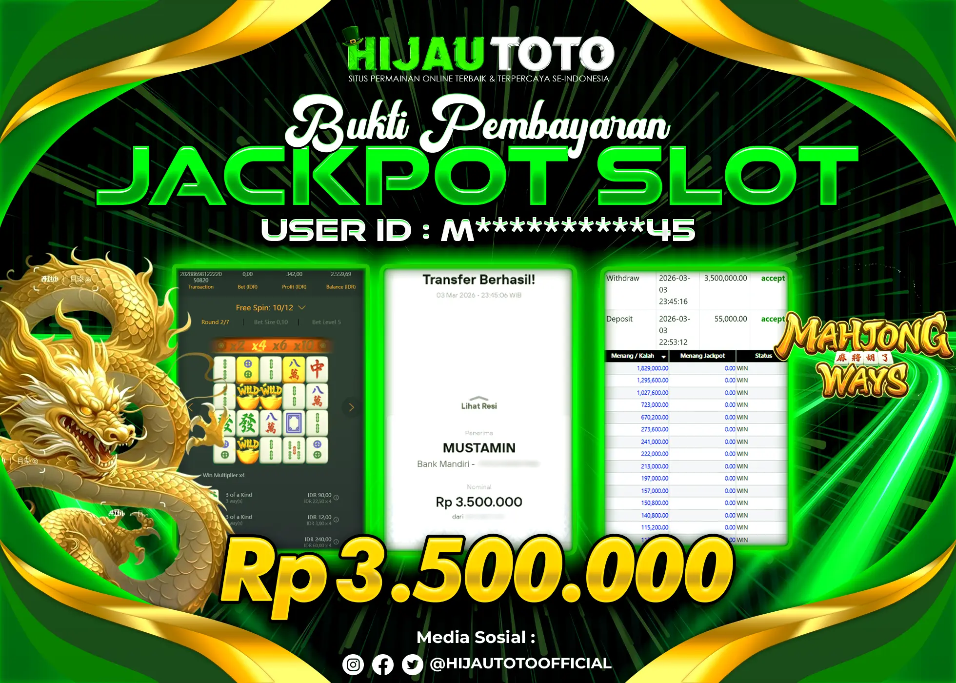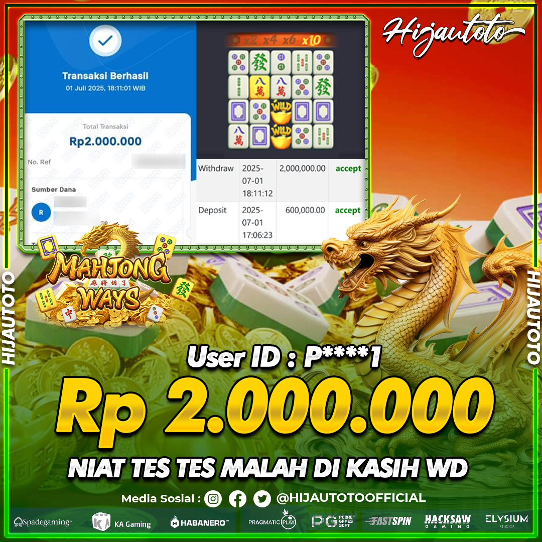 Karena berhasil memenangkan Rp.Rp.12.000.000 dari permainan seru SLOT MAHJONG WAYS di HIJAUTOTO! πŸ’°πŸ’Έ