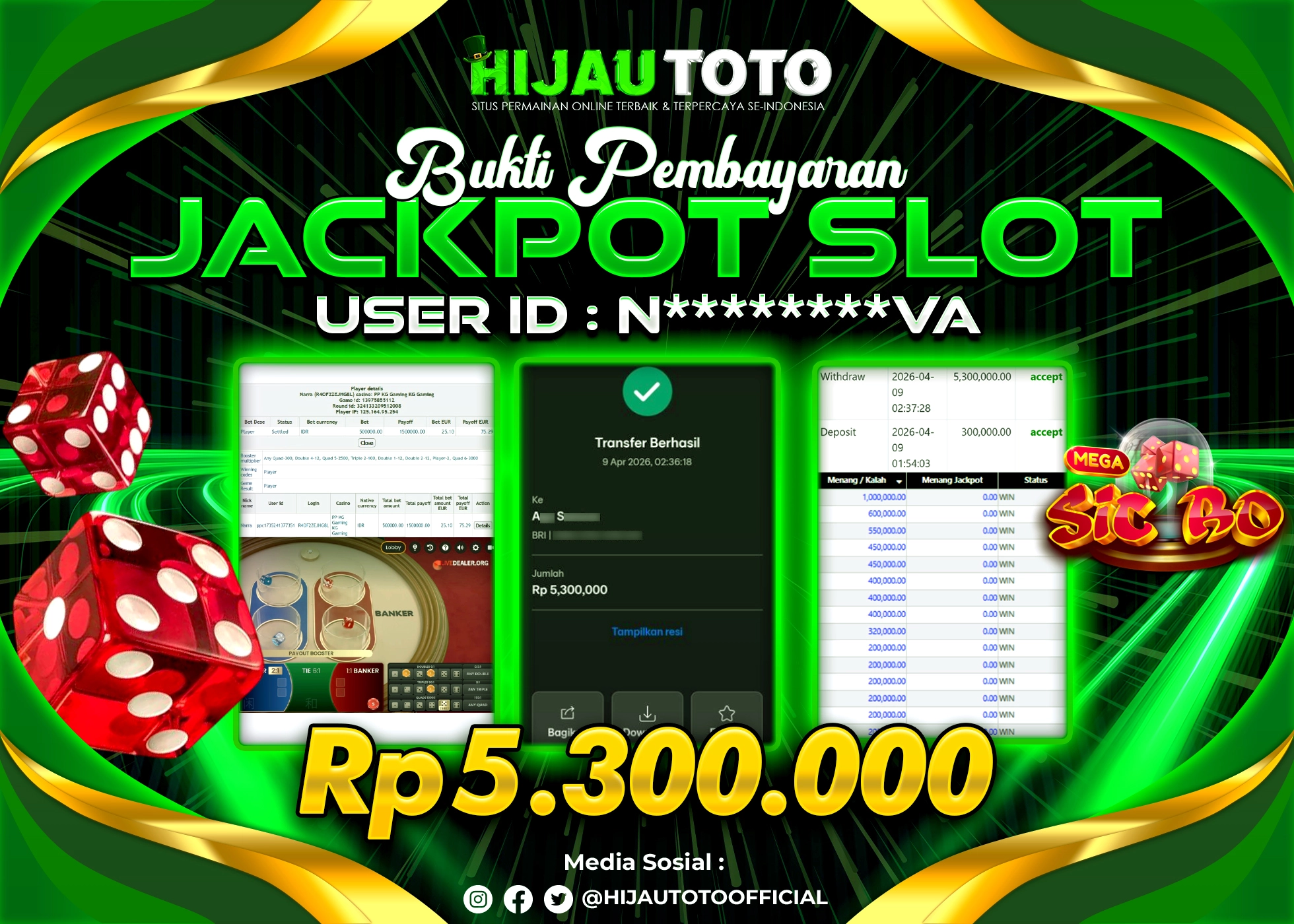 β¨ JACKPOT DI LIVE CASINO SIC BO β¨