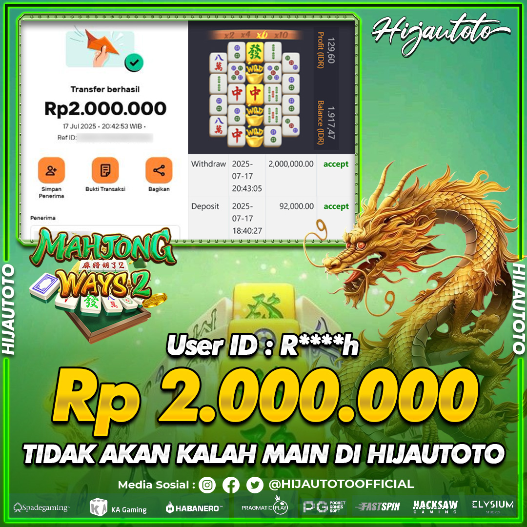 Selamat datang di HIJAUTOTO, tempatnya seru-seruan dan cuan besar! Mulai main cukup dengan modal Rp5.000 aja, taruhan super murah dari Rp100 perak! Mau main slot yang penuh warna? Atau togel dari 20 pasaran paling hits? Atau mungkin tembak ikan yang bikin deg-degan? Tenang, ada juga taruhan bola, sabung ayam, dan live casino yang bikin suasana makin hidup! Daftar sekarang dan dapetin bonus new member 100% langsung, biar modalmu makin tebal. Deposit gampang banget, bisa pakai QRIS, dan kalau butuh bantuan, customer service kita siap 24 jam nonstop. Jadi, tunggu apa lagi? Yuk, gabung dan bawa pulang kemenangannya cuma di HIJAUTOTO!