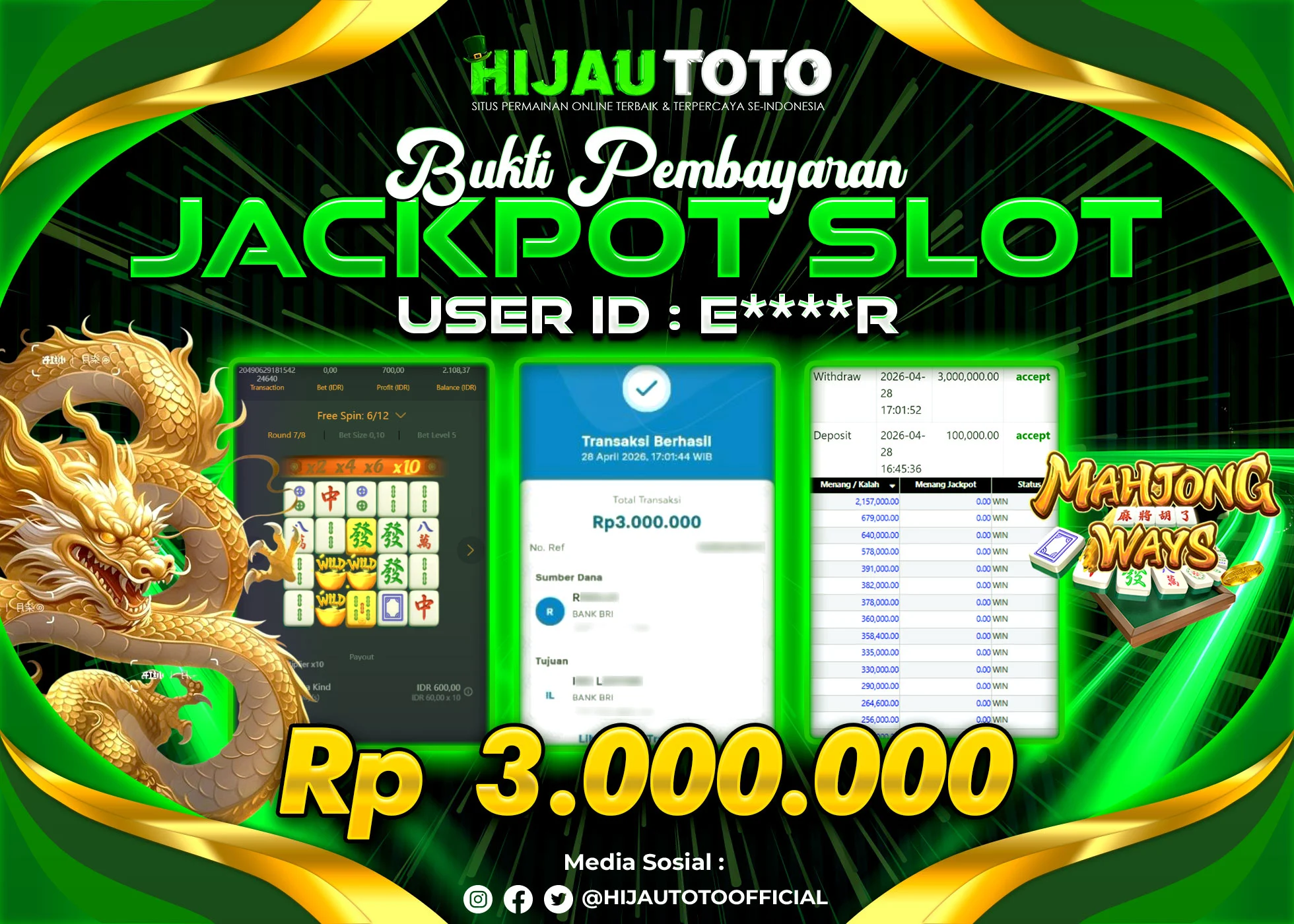 Selamat datang di HIJAUTOTO, tempatnya seru-seruan dan cuan besar! Mulai main cukup dengan modal Rp5.000 aja, taruhan super murah dari Rp100 perak! Mau main slot yang penuh warna? Atau togel dari 20 pasaran paling hits? Atau mungkin tembak ikan yang bikin deg-degan? Tenang, ada juga taruhan bola, sabung ayam, dan live casino yang bikin suasana makin hidup! Daftar sekarang dan dapetin bonus new member 100% langsung, biar modalmu makin tebal. Deposit gampang banget, bisa pakai QRIS, dan kalau butuh bantuan, customer service kita siap 24 jam nonstop. Jadi, tunggu apa lagi? Yuk, gabung dan bawa pulang kemenangannya cuma di HIJAUTOTO!